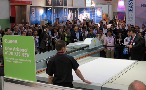 На майской выставке «Fеsра Digitаl 2014» компания Canon представила общественности новые планшетные УФ-принтеры Oce Arizona 6100. В серию вошли две модели: Oce Arizona 6160 XTS с шестикрасочной раскладкой и Oce Arizona 6170 XTS с семицветными чернилами. Это первые промышленные машины в портфолио разработчика.