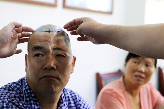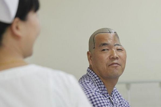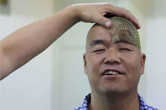 Чуть меньше года назад 46-летний китаец Ху, работая на строительной площадке, совался с высоты третьего этажа и упал на землю. В результате падения он повредил черепную коробку и головной мозг. Врачи были вынуждены удалить раздробленную часть черепа пациента размером 9х14 см и участок мозга. Верхняя часть головы оказалась обезображена, и Ху стал предметом насмешек и косых взглядов.