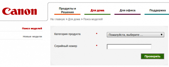 Скриншот сервиса для проверки серийных номеров продукции Canon