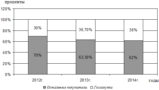 Распределение закупленных картриджей между государственными учреждениями и рядовыми покупателями