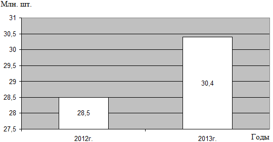 Динамика количества новых совместимых картриджей, проданных в России в 2012-2013 гг.