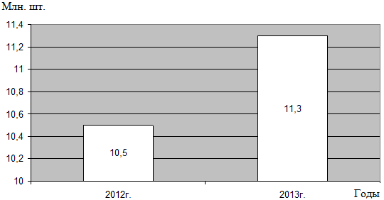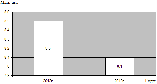 Динамика количества оригинальных картриджей, проданных в 2012-2013 гг. в России