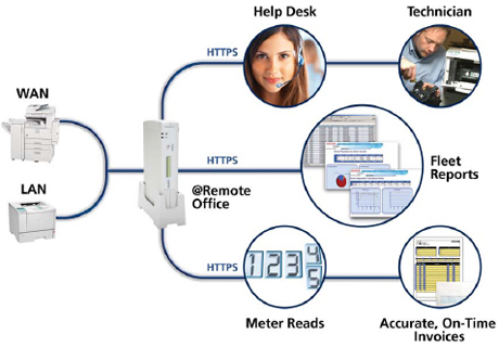 Важнейшими функциями @Remote являются удалённый мониторинг и контроль над операциями печатной техники, автоматическая отправка полученных данных в IT-отдел для обработки заявок и составления аналитики. Решение позволит системным администраторам полностью отказаться от ручной проверки принтеров и многофункциональных устройств.
