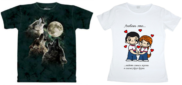 Образцы печати на тёмном и белом текстиле