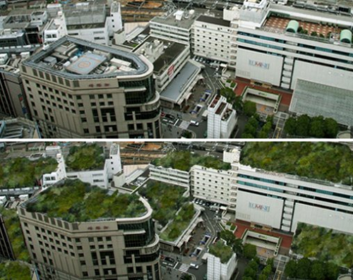 Конечная цель Такеучи – украсить свой родной город Токио благоухающими зелеными садами, которые станут не только великолепным украшением городского ландшафта, но и поспособствуют обогащению воздуха кислородом. Ниже представлены фотографии Токио до и после озеленения по методу Такеучи, каким представляет его автор.