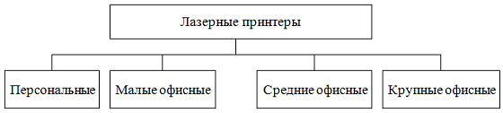 Лазерные принтеры можно разделить на четыре группы, перечисленные на следующем рисунке: