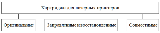 Мы выбрали из каждой группы несколько популярных устройств и сравнили себестоимость их отпечатков. Цель сравнения – сформировать объективное мнение о стоимости использования различных расходных материалов. Расходные материалы для лазерных принтеров тоже можно объединить в три группы, как это показано на следующем рисунке.