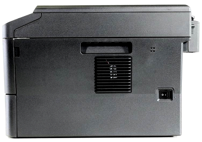 На правой боковой поверхности МФУ расположена кнопка включения (on/off) и вентиляционная решётка устройства.