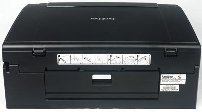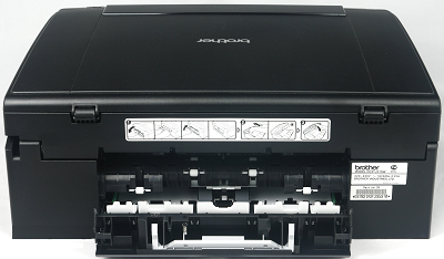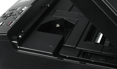 В модели DCP-J315W, USB разъем спрятан под модулем сканера, что является весьма неординарным решением. Для подключения к разъему кабель необходимо прокладывать через половину корпуса по специальному каналу.