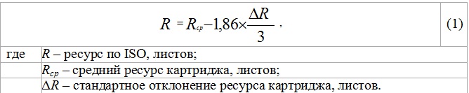 Ресурс печати девяти протестированных струйных картриджей можно найти по формуле: